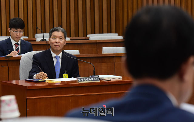 이영진 헌법재판소 재판관 후보자가 11일 오전 국회 인사청문특별위원회에서 열린 인사청문회에서 의원들의 질문에 답하고 있다.