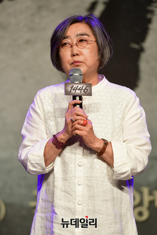 윤금진 국립박물관문화재단 사장이 11일 오전 서울 중구 더플라자호텔에서 열린 뮤지컬 1446 제작발표회에서 인사말을 하고 있다. 세종대왕의 일대기를 그린 뮤지컬 1446은 오는 10월 5일부터 12월 2일까지 국립중앙박물관 극장용에서 공연된다.