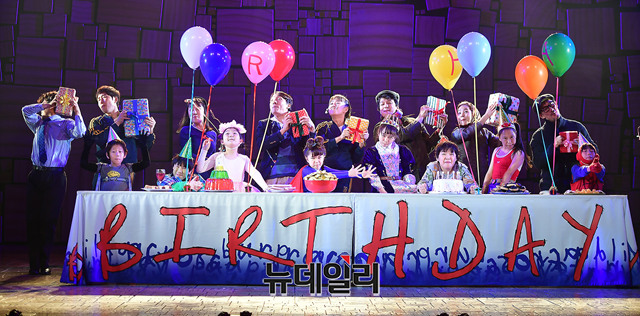 마틸다 출연배우들이 12일 오후 서울 강남구 LG아트센터에서 열린 뮤지컬 '마틸다' 프레스콜에서 하이라이트 장면을 시연하고 있다.