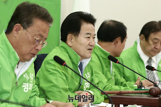 정동영 민주평화당 대표가 14일 오전 국회에서 열린 최고위원 국회의원 상임고문 연석회의에서 모두발언을 하고 있다.