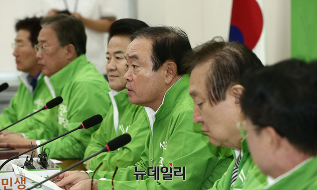 장병완 민주평화당 원내대표가 14일 오전 국회에서 열린 최고위원 국회의원 상임고문 연석회의에서 모두발언을 하고 있다.