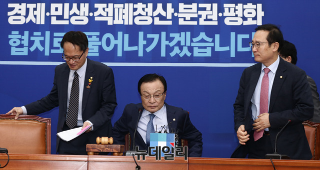 [포토] 최고위원회의 참석하는 이해찬-홍영표