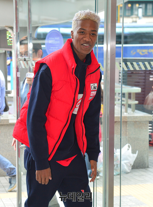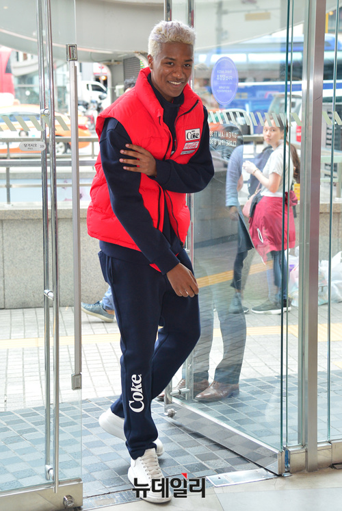 모델 한현민이 14일 오후 서울 중구 롯데 영플라자에서 열린 '폴햄(POLHAM)x코카콜라(Cocacola) 콜라보 라인 출시' 팝업스토어 오픈 기념 행사에 참석하기 위해 입장하고 있다.