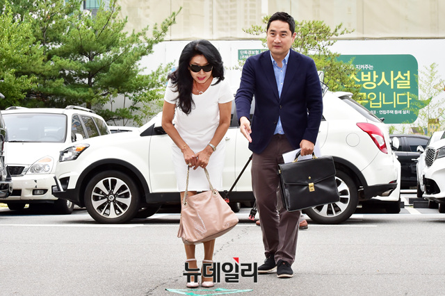 이재명 경기도지사의 스캔들 사건 당사지인 배우 김부선과 강용석 변호인이 14일 오후 경기 성남시 분당경찰서로 출석하고 있다.