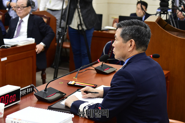 정경두 국방부장관 후보자가 17일 오전 국회에서 열린 인사청문회에 출석해 의원들의 질문에 답하고 있다.