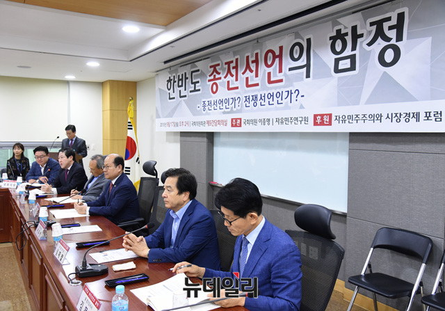 자유민주연구원과 이종명 의원이 주최한 이날 토론회는 '종전선언의 함정', '국제범으로 본 종전선언'을 주제로 유동열 자유민주연구원장, 제성호 중앙대 교수가 각각 발제를 맡았다.