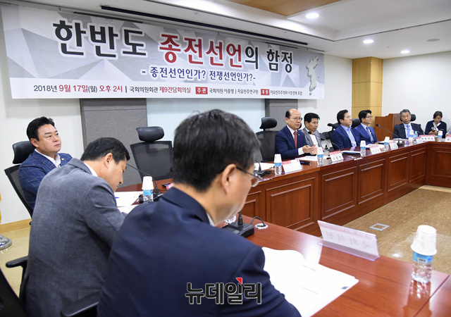 자유민주연구원과 이종명 의원이 주최한 이날 토론회는 '종전선언의 함정', '국제범으로 본 종전선언'을 주제로 유동열 자유민주연구원장, 제성호 중앙대 교수가 각각 발제를 맡았다.