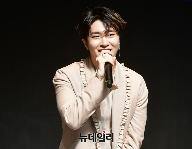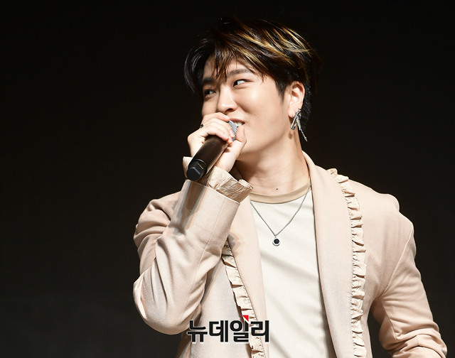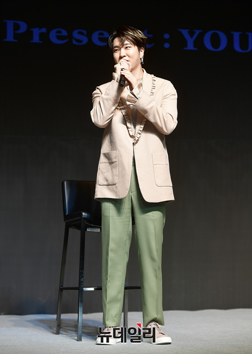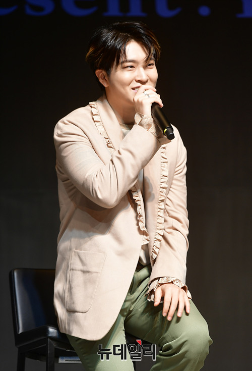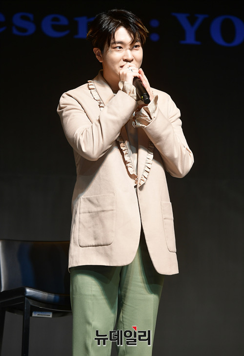 아이돌그룹 'GOT7(갓세븐)' 영재가 17일 오후 서울 서초구 JW메리어트호텔서울에서 정규 3집 앨범 'Present : YOU(프리젠트 유)' 제작발표회에서 수록곡을 소개하고 있다.