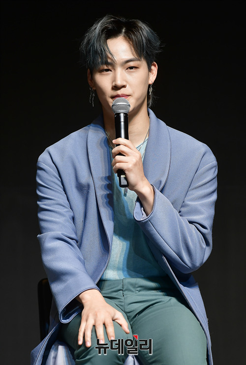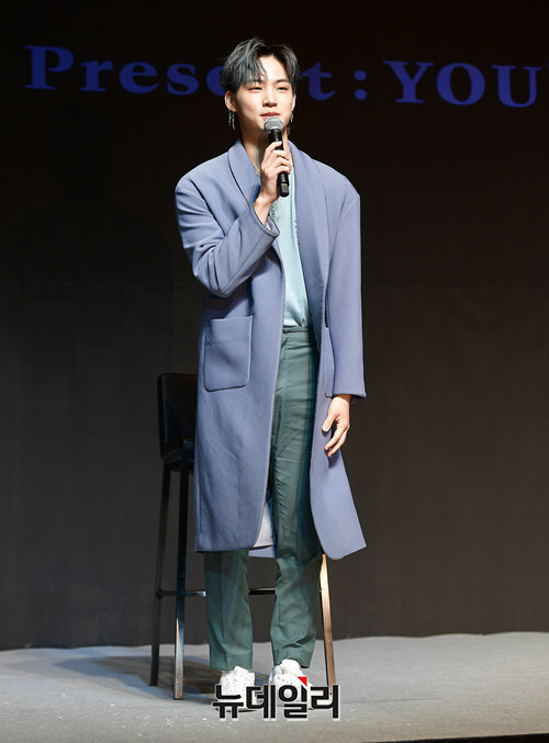 아이돌그룹 'GOT7(갓세븐)' 리더 JB가 17일 오후 서울 서초구 JW메리어트호텔서울에서 정규 3집 앨범 'Present : YOU(프리젠트 유)' 제작발표회에서 수록곡을 소개하고 있다.