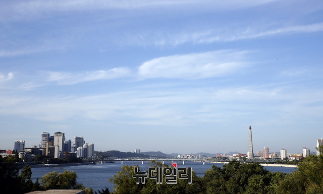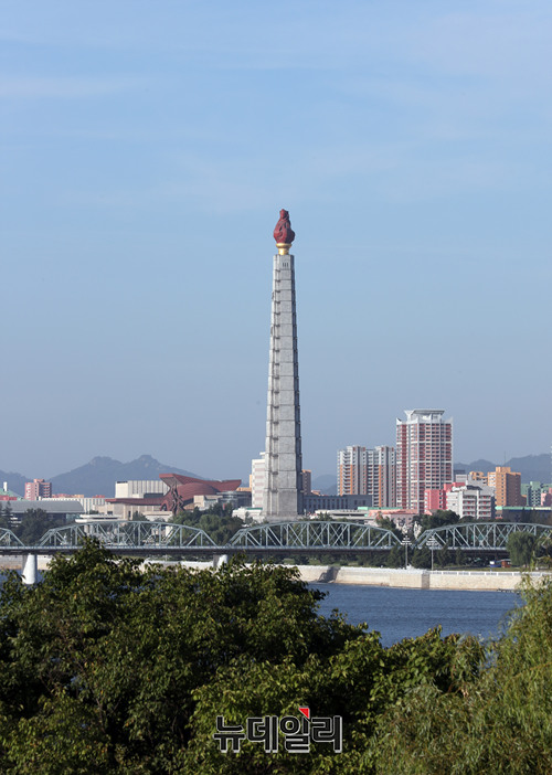 [포토] 양각도 호텔서 본 주체사상탑과 평양시내