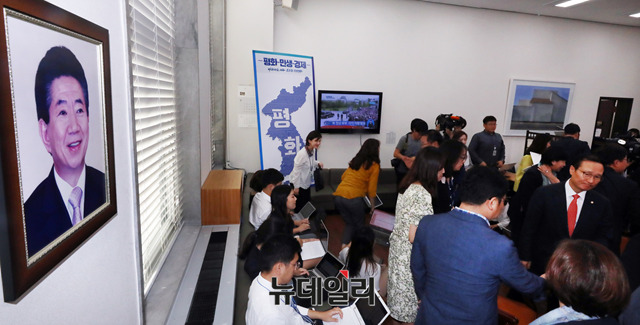 [포토] 문 대통령 방북 생중계 시청하는 더불어민주당