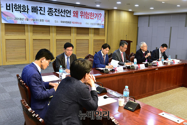 '비핵화 빠진 종전선언, 왜 위험한가?' 세미나가 19일 오전 국회 의원회관에서 정종섭 자유한국당 의원 주최로 열리고 있다.