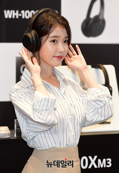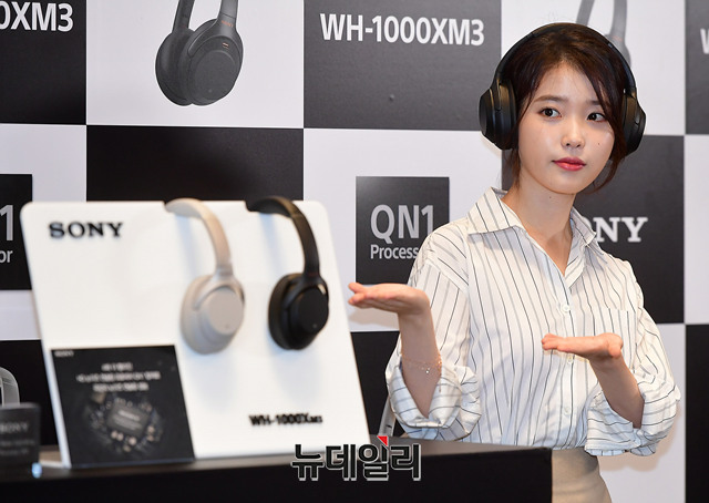 가수 아이유가 20일 오전 서울 JW 메리어트 동대문스퀘어 서울 호텔에서 열린 소니 헤드폰 출시행사에서 포토타임을 갖고 있다. 소니코리아는 이날 더 강력한 노이즈 캔슬링 기능을 탑재한 헤드폰 WH-1000XM3를 출시한다고 밝혔다.