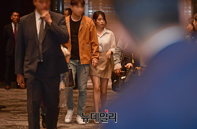 가수 아이유가 20일 오전 서울 JW 메리어트 동대문스퀘어 서울 호텔에서 열린 소니 헤드폰 출시행사에 입장하고 있다. 소니코리아는 이날 더 강력한 노이즈 캔슬링 기능을 탑재한 헤드폰 WH-1000XM3를 출시한다고 밝혔다.