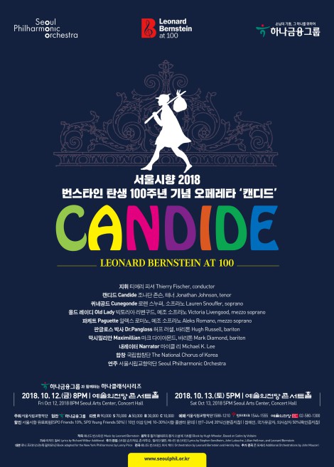 서울시립교향악단(대표이사 강은경, 서울시향)은 10월 12일 오후 8시, 13일 오후 5시 예술의전당 콘서트홀에서 '번스타인 탄생 100주년 기념 오페레타 캔디드'를 콘서트 버전으로 공연한다.