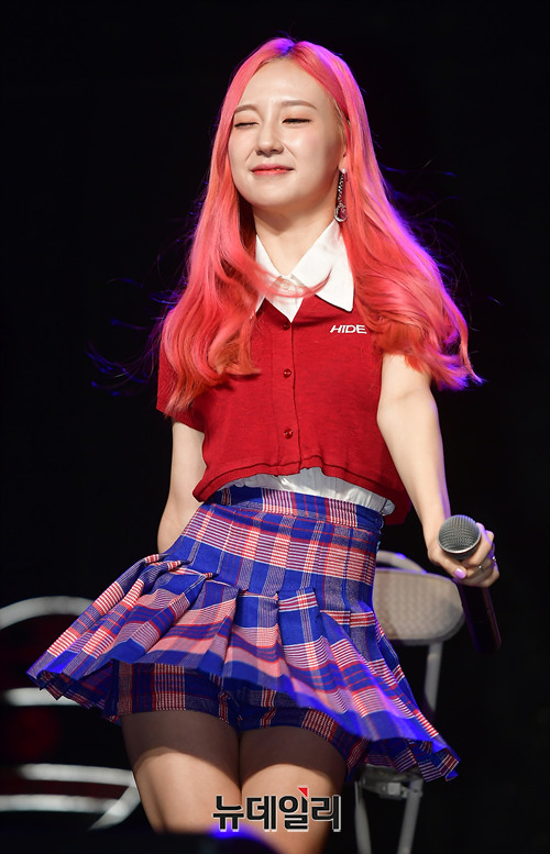 아이돌 걸그룹 S.I.S(에스아이에스) 세빈이 20일 오후 서울 마포구 하나투어 브이홀에서 2번째 싱글앨범 쇼케이스에서 포인트 안무를 선보이고 있다.