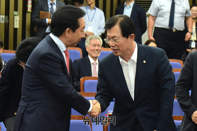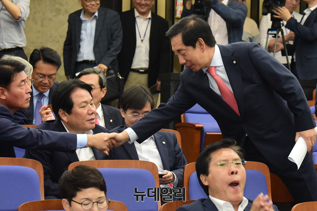 [포토] 의원총회 입장하는 김성태 한국당 원내대표