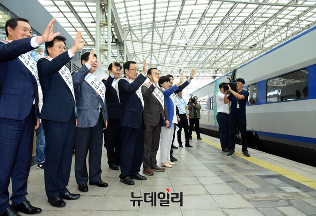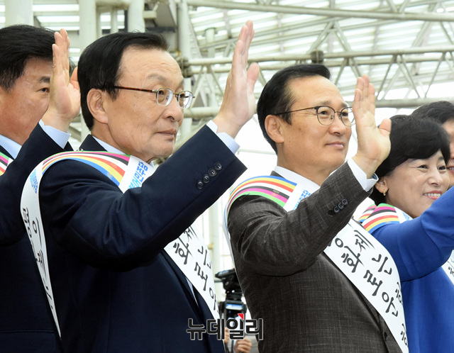 [포토] 귀성객 향해 손 흔드는 이해찬-홍영표
