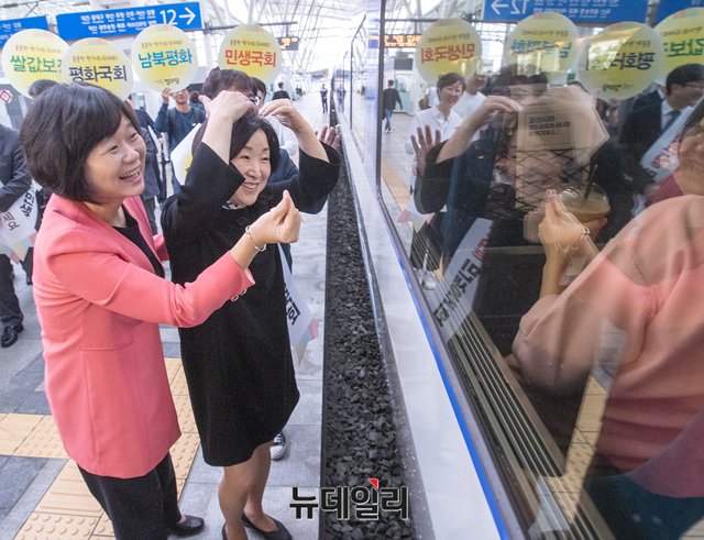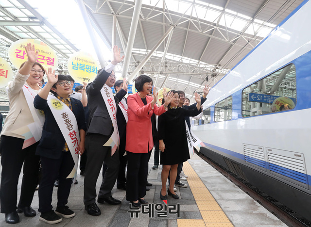 [포토] 귀성객 향해 인사하는 이정미-심상정