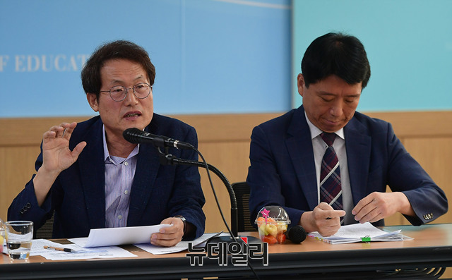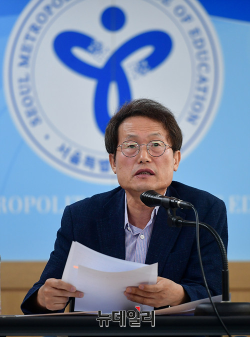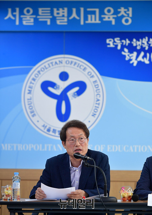 조희연 서울시교육감이 27일 오전 서울 종로구 서울시교육청에서 서울학생 두발 자유화를 선언하고 있다. 이번 선언은 학생 두발의 길이, 염색, 파마 등 두발과 관련된 일체의 사항에 대해 제한을 두지 않고 자유화 할 것을 지향하는 것이다.