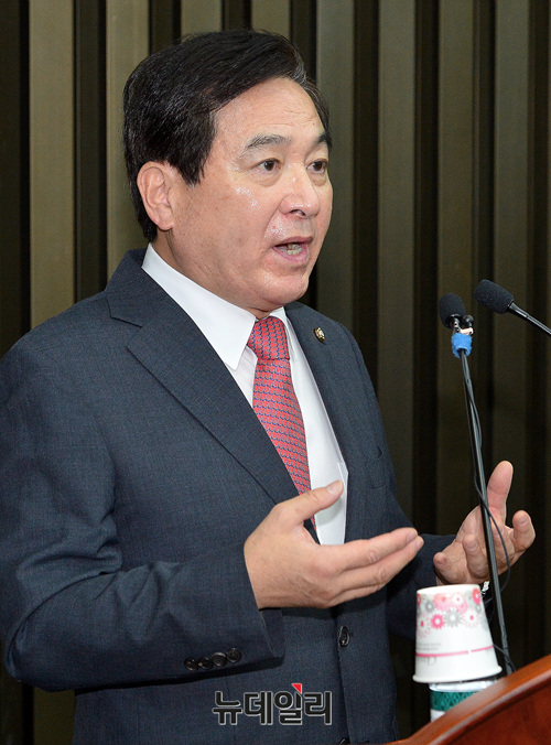 심재철 자유한국당 의원이 27일 오전 국회에서 열린 긴급 의원총회에 참석해 발언하고 있다.