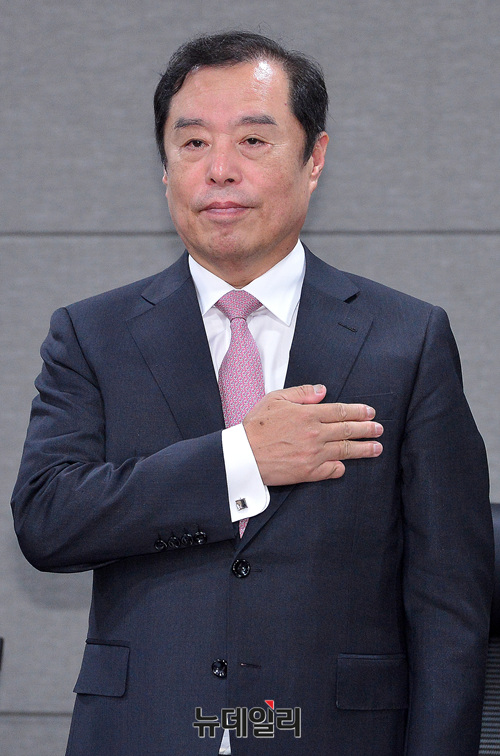 [포토] 국민의례 하는 김병준 자유한국당 비대위원장
