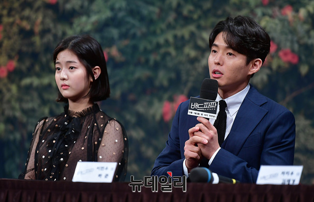 배우 하준이 28일 오후 서울 마포구 상암MBC에서 열린 미니시리즈 '배드파파(극본 김성민, 연출 진창규)' 제작보고회에서 물을 마시고 있다.