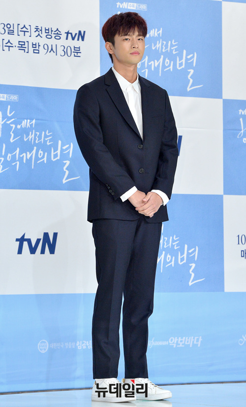 배우 서인국이 28일 오후 서울 영등포구 타임스퀘어에서 열린 드라마 '하늘에서 내리는 일억개의 별' 제작발표회에 참석해 포즈를 취하고 있다. 서인국은 베일에 가려진 의문의 살인사건과 연관된 김무영 역을 맡았다.