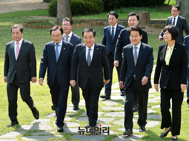 [포토] 문희상 국회의장과 오찬장 입장하는 여야대표