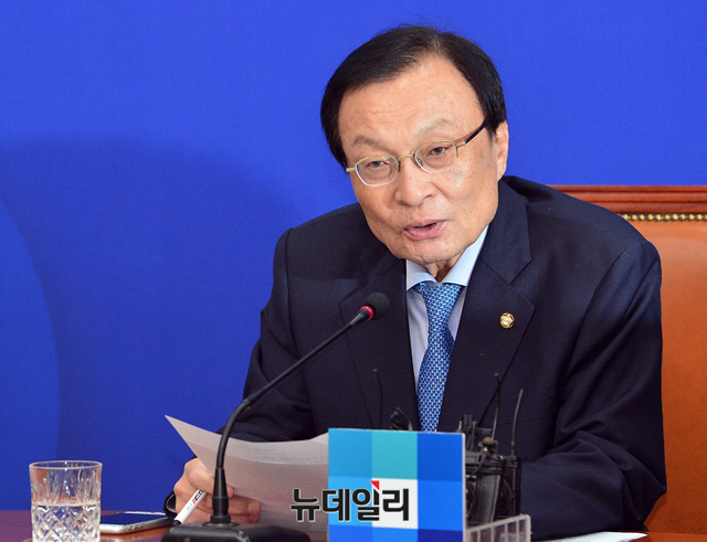 이해찬 더불어민주당 대표가 1일 오전 국회에서 열린 기자간담회에 참석해 모두발언 하고 있다.
