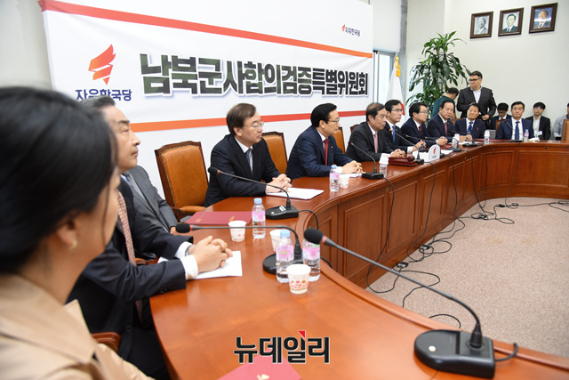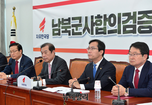 김병준 자유한국당 비상대책위원장이 1일 오전 국회에서 열린 '남북군사합의검증특별위원회' 회의에 참석해 모두발언 하고 있다.