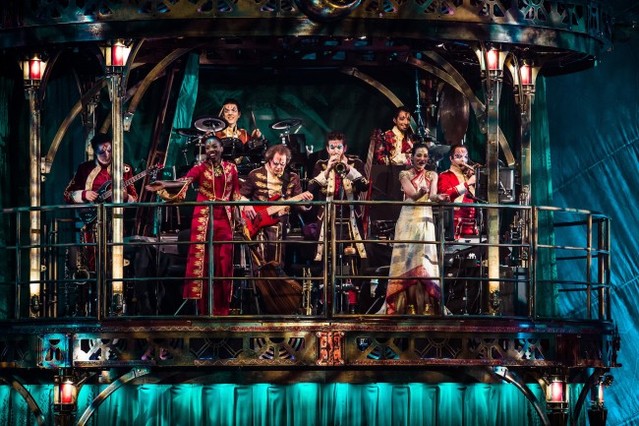 '쿠자' 공연에 빼놓을 수 없는 것이 바로 음악이다. 총 6명으로 이루어진 연주자들은 트럼펫, 트럼본, 베이스, 드럼, 타악기, 색소폰, 일렉기타를 연주하며 2명의 가수가 라이브로 노래한다. 음악은 1970년대 펑크부터 오케스트라 편곡까지 서양 팝음악과 인도 전통음악에서 크게 영감을 받았다.쿠자의 싱어인 메리-피에르 길버트는 "우리는 무대 위에서 벌어지는 일들의 흐름을 따라가며 연주한다"며 "누군가 점프에 성공하거나 트릭에 성공하는 등 강력한 지점에서, 음악은 적시적소에 함께 나와야한다. 정말 매순간 긴장을 늦출 수 없고 늘 새로운 노래를 할 수 있다"고 말했다.한편, '쿠자'는 지난달 4일부터 대규모 이벤트 '트릭스터 찾고 라스베가스에서 태양의서커스 보자!'를 진행 중이다. 1등 당첨자는 라스베가스에서 태양의서커스 상설 공연인 'O'쇼를 관람할 수 있다. 자세한 사항은 마스트엔터테인먼트 홈페이지를 참고하면 된다.[사진=마스트엔터테인먼트]