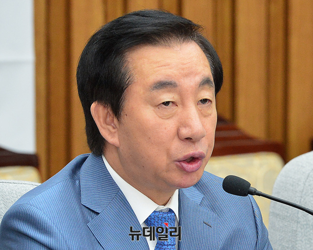 김성태 자유한국당 원내대표가 2일 오전 국회에서 열린 원내대책회의에 참석해 모두발언 하고 있다.