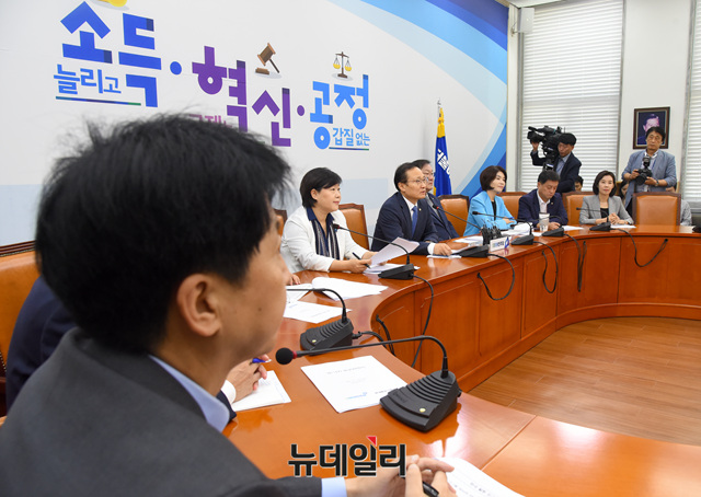 홍영표 더불어민주당 원내대표가 2일 오전 국회에서 열린 원내대책회의에 참석해 모두발언 하고 있다.