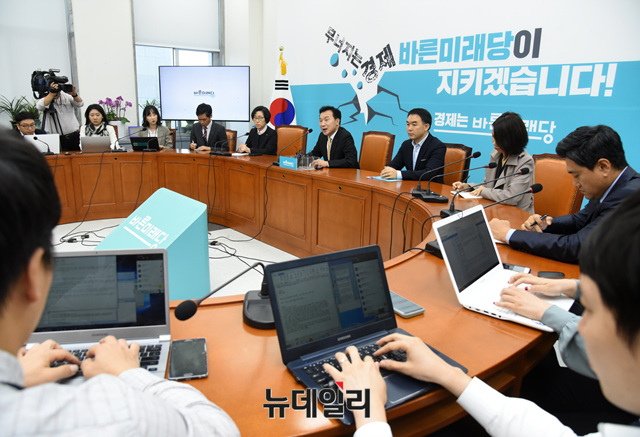 취임 한 달을 맞이한 손학규 바른미래당 대표가 2일 오전 국회에서 열린 기자간담회에 참석해 인사말을 하고 있다.