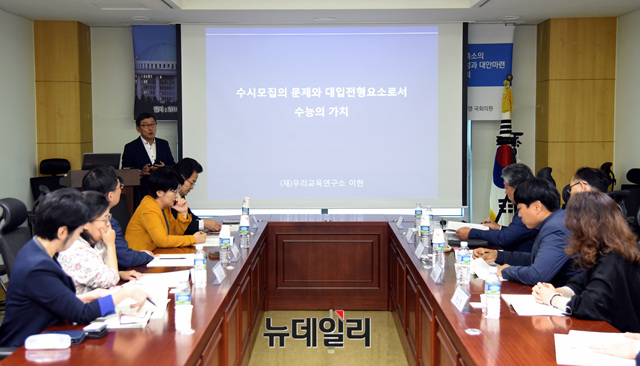 이현 우리교육연구소장이 2일 오후 국회 의원회관에서 열린 '수시축소의 필요성과 대안마련 토론회'에 참석해 주제 발표를 하고 있다.
