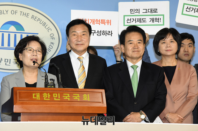 [포토] 선거제도 개혁 촉귀 기자회견 갖는 손학규-정동영-이정미