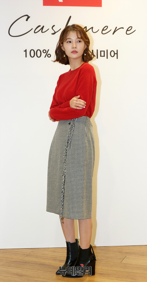 하트시그널 시즌2 출연자 임현주가 4일 오전 서울 중구 유니클로 명동중앙점에서 열린 '유니클로 캐시미어 스페셜존 오픈' 기념 행사에 참석해 포토타임을 갖고 있다.