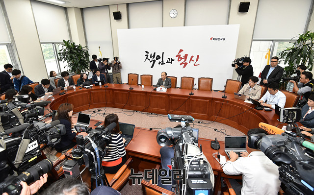 자유한국당 조직강화특별위원회 (조강특위) 위원장으로 내정된 전원책 변호사가 4일 오후 국회에서 열린 기자간담회에 참석해 인사말을 하고 있다.