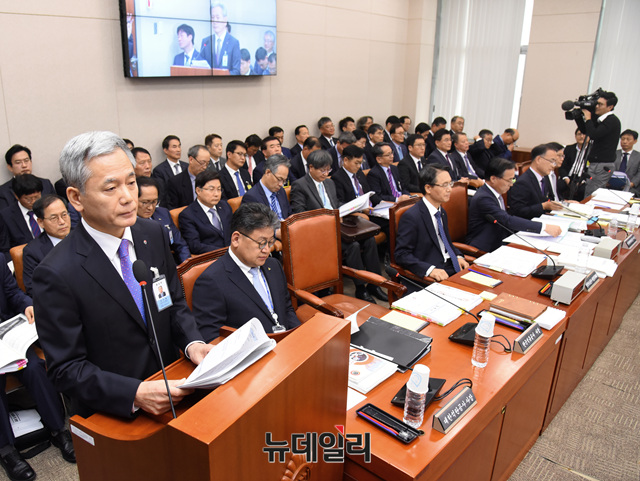 양수영 한국석유공사 사장이 15일 오전 국회에서 열린 산업통상자원중소벤처기업위원회의 한국가스공사, 한국석유공사 등에 대한 국정감사에 출석해 업무보고를 하고 있다.