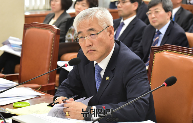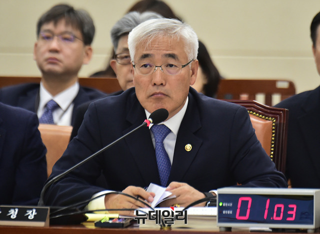 김종석 기상청장이 15일 오전 국회에서 열린 환경노동위원회 국정감사에서 의원들의 질문에 답하고 있다.