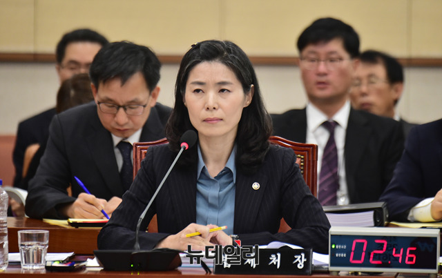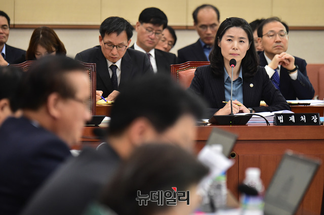 김외숙 법제처장이 15일 오후 국회에서 열리 법제사법위원회의 법제처 대한 국정감사에서 의원들의 질문에 답하고 있다.