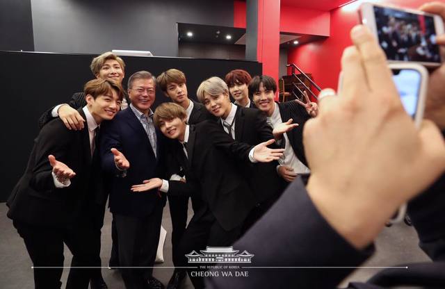 모든 공연이 끝나자 문 대통령은 무대 아래로 내려가 아티스트들과 일일이 악수를 나눴다. 특히 방탄소년단의 뷔와 정국과는 악수를 나눈 뒤 포옹까지 하는 정겨운 모습을 보였다. 일부 멤버들은 90도로 허리를 숙이며 문 대통령 내외에게 깍듯한 '폴더 인사'를 건네기도.