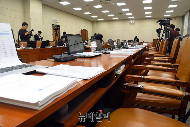 이날 국정감사는 심재철 자유한국당 의원과 재정정보원이 고소를 주고받은 사건과 관련해 여야 의원들의 공방 중 정회됐다.