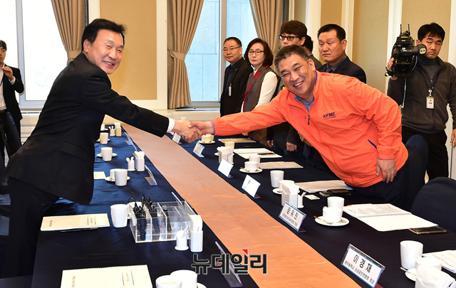 [포토] 악수 나누는 손학규 대표-최승재 회장