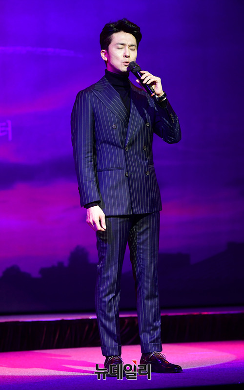 배우 강필석이 17일 오후 서울 중구 더프라자호텔에서 열린 창작뮤지컬 '광화문연가' 제작발표회에서 노래를 선보이고 있다. '광화문연가'는 故 이영훈 작곡가의 명곡들로 채워진 주크박스 창작 뮤지컬로, 임종을 앞둔 주인공 명우의 마지막 1분에 자신의 젊은 날을 회상하는 이야기를 다룬다. 오는 11월 2일부터 디큐브아트센터에서 공연.