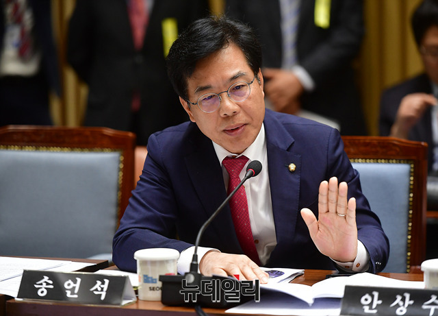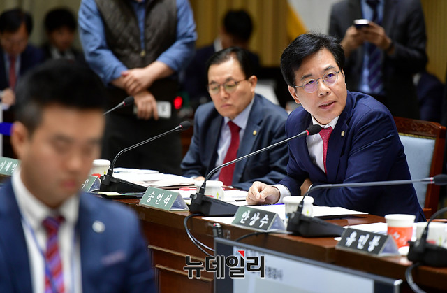 송언석 자유한국당 의원이 18일 서울 중구 서울시청에서 열린 국회 행정안전위원회의 서울시 국정감사에서 서울지하철 내진공사 관련 질의를 하고 있다.