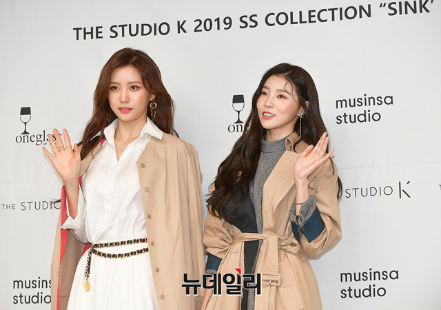 걸그룹 헬로비너스 유영과 서영이 18일 오후 서울 중구 무신사스튜디오에서 열린 'THE STUDIO K(더 스튜디오케이)' 2019 S/S 프레젠테이션에 참석해 포토타임을 갖고 있다.