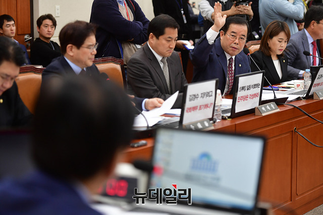 박성중 자유한국당 의원이 19일 오전 국회에서 열린 국회 과학기술정보방송통신위원회의 한국방송공사(KBS)와 한국교육방송공사(EBS)에 대한 국정감사에서 발언하고 있다.