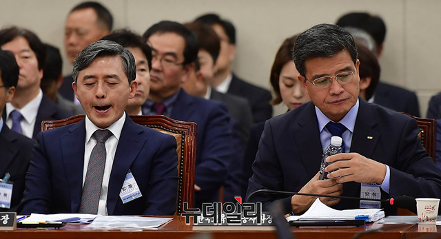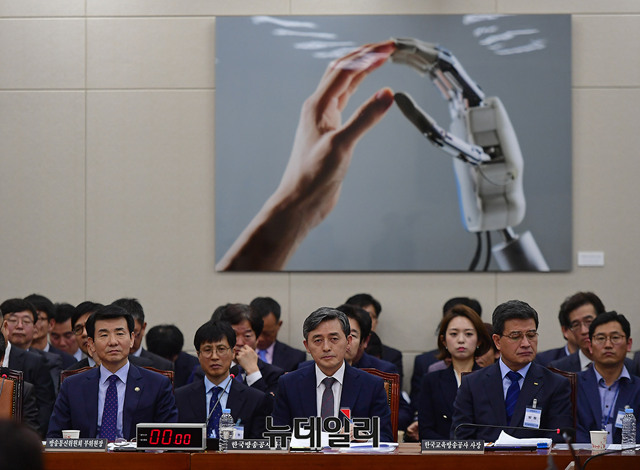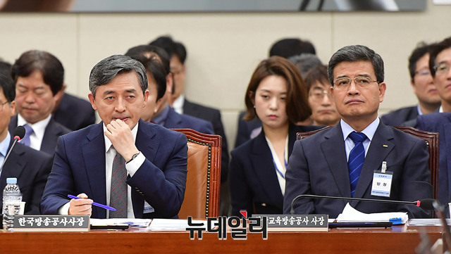 양승동 KBS 사장과 장해랑 EBS 사장이 19일 오전 국회에서 열린 국회 과학기술정보방송통신위원회의 한국방송공사(KBS)와 한국교육방송공사(EBS)에 대한 국정감사에 참석해 자리하고 있다.